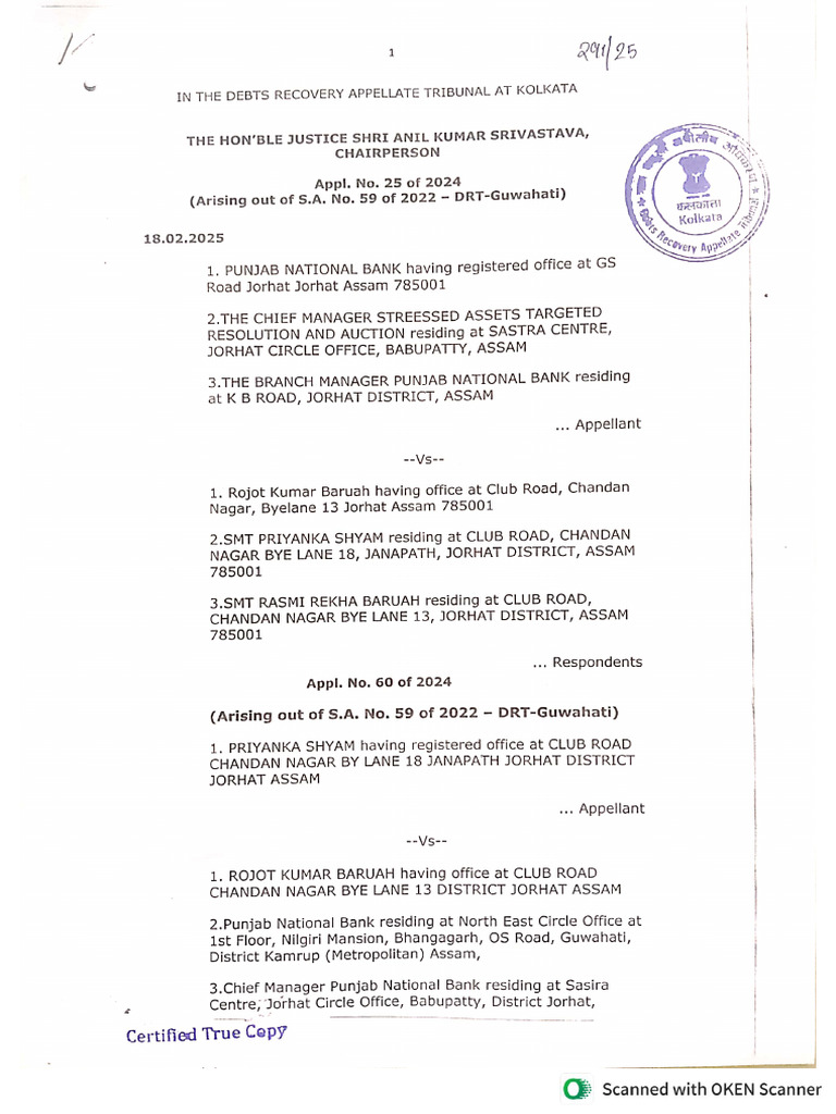 Regular Appeal No - 25 and 60 of 2024 - Certified Copy - Punjab National Bank Vs Rajot Kumar Baruah and Others - Priyanka Shyam Vs Rajot Kumar Baruah and Others