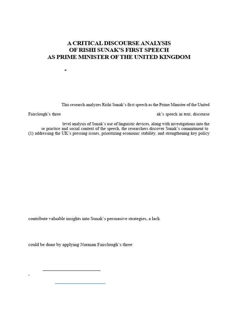 Từ khóa: phân tích diễn ngôn phê phán, diễn ngôn chính trị, bài phát biểu chính trị, Rishi Sunak,