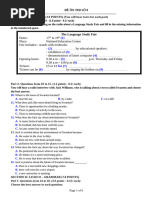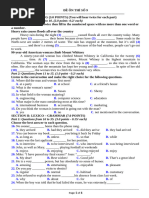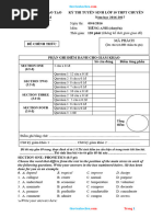 Điểm của toàn bài thi Họ tên và chữ ký Số phách