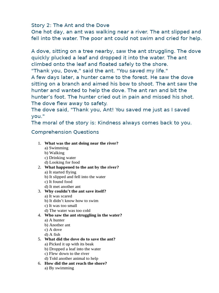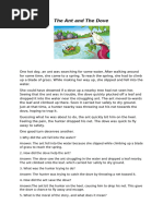 A dove, sitting on a tree nearby, saw the ant struggling. The dove