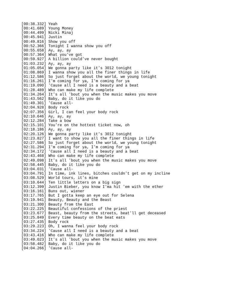 [03:34.224] 'Cause all I need is a beauty and a beat