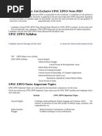 The document is a study material for the Union Public Service Commission's EPFO exam, compiled by the UPSC, EPFO Exam Expert Group. It includes an index of topics covering accounting principles, insurance, auditing, social security, industrial relations, and computer applications, along with a syllabus for the recruitment test. The material aims to prepare candidates for the exam with previous year MCQs and practice questions.