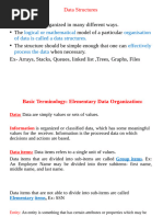 Introduction To Data Structures: Basic Terminologies Elementary Data Organization
