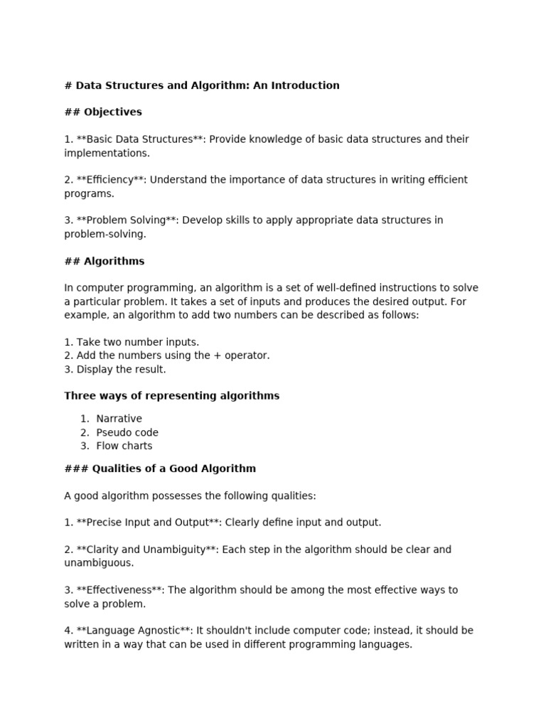 1. **Basic Data Structures**: Provide knowledge of basic data structures and their