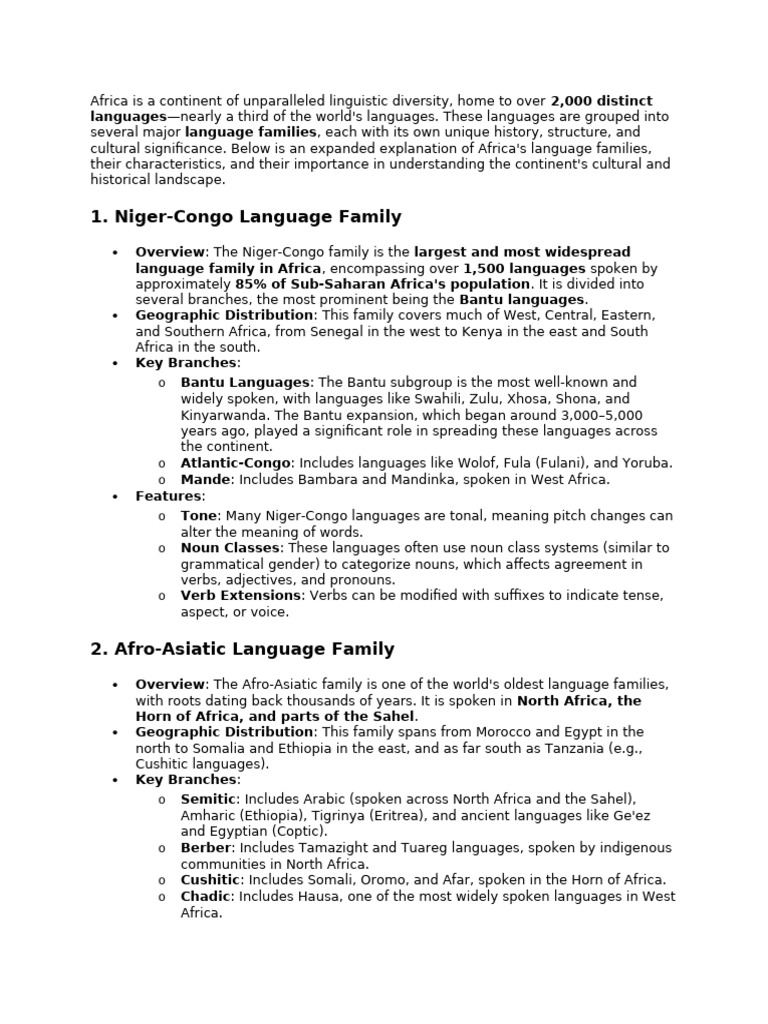cultural significance. Below is an expanded explanation of Africa's language families,