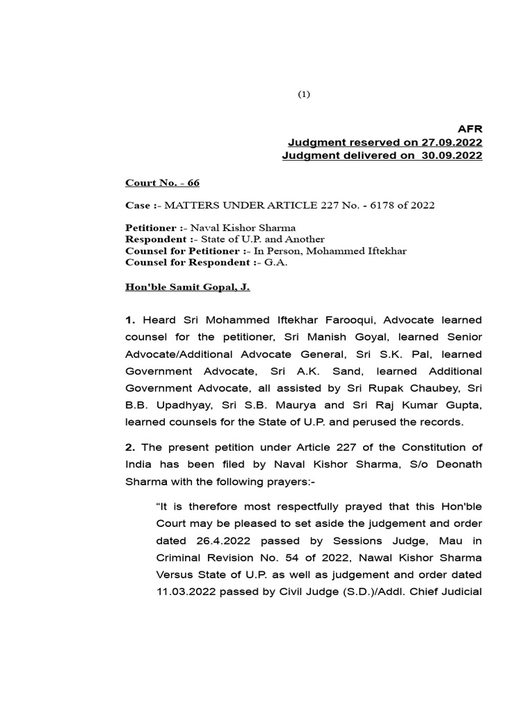 2022, Naval Kishor Sharma Versus State of U.P. and another. The