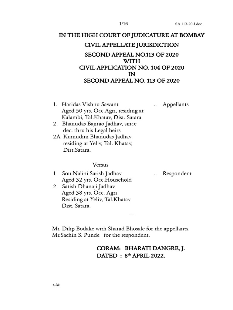 SECOND APPEAL NO. 113 OF 2020