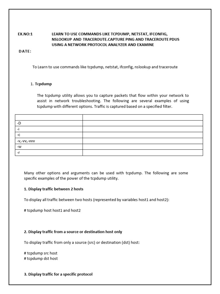 To Learn to use commands like tcpdump, netstat, ifconfig, nslookup and traceroute