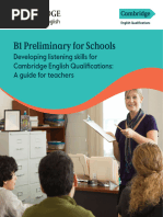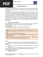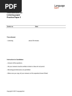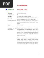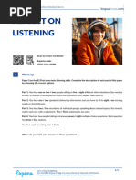 The document outlines the structure and components of the Listening section of the B2 First Exam, detailing the types of tasks and scoring. It includes exercises for students to practice their listening skills and self-evaluation methods to identify areas for improvement. Additionally, it provides strategies for enhancing listening abilities through various activities and resources.