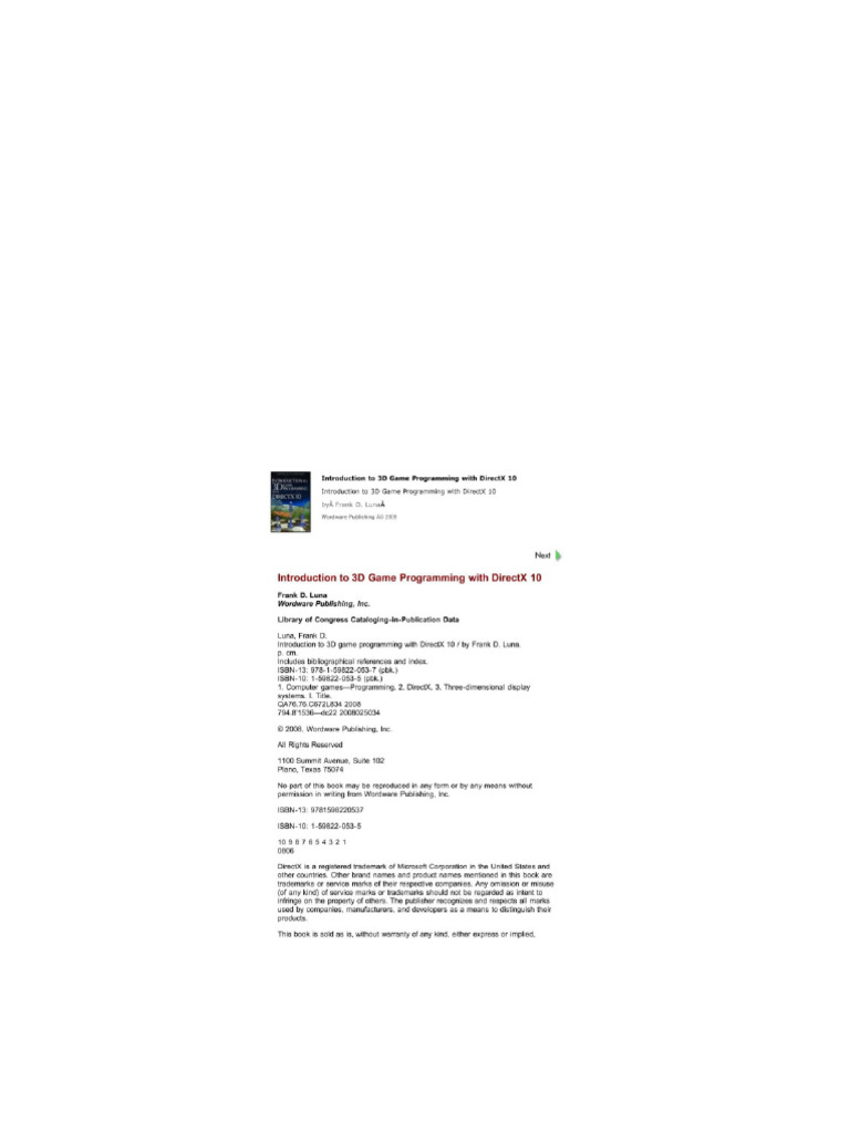 Introduction To 3D Game Programming and DirectX 10 1st Edition by Frank Luna 1598220535 978-1598220537instant Download