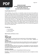 The document outlines a prayer meeting scheduled for February 9, 2025, led by various ministers, focusing on thanksgiving, divine guidance, and impactful ministry. It includes scriptural references and prayers aimed at opening the hearts of worshippers and empowering ministers for effective service. The overarching theme emphasizes reliance on God's word and the importance of prayer in the ministry context.
