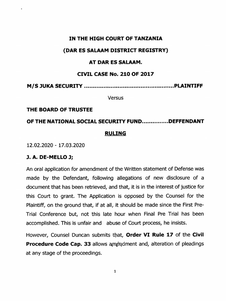 OF THE NATIONAL SOCIAL SECURITY FUND.............. DEFFENDANT