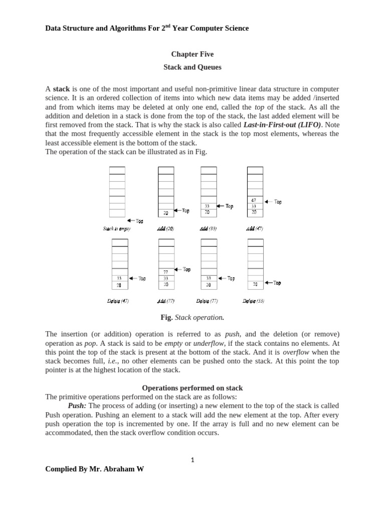 or insert) a new element at the top of the stack and popping (or delete) an element from the stack