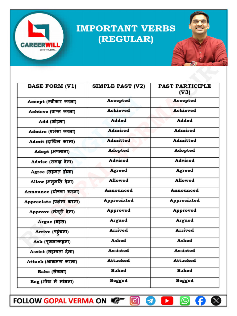 Adopt (अपनाना) Adopted Adopted