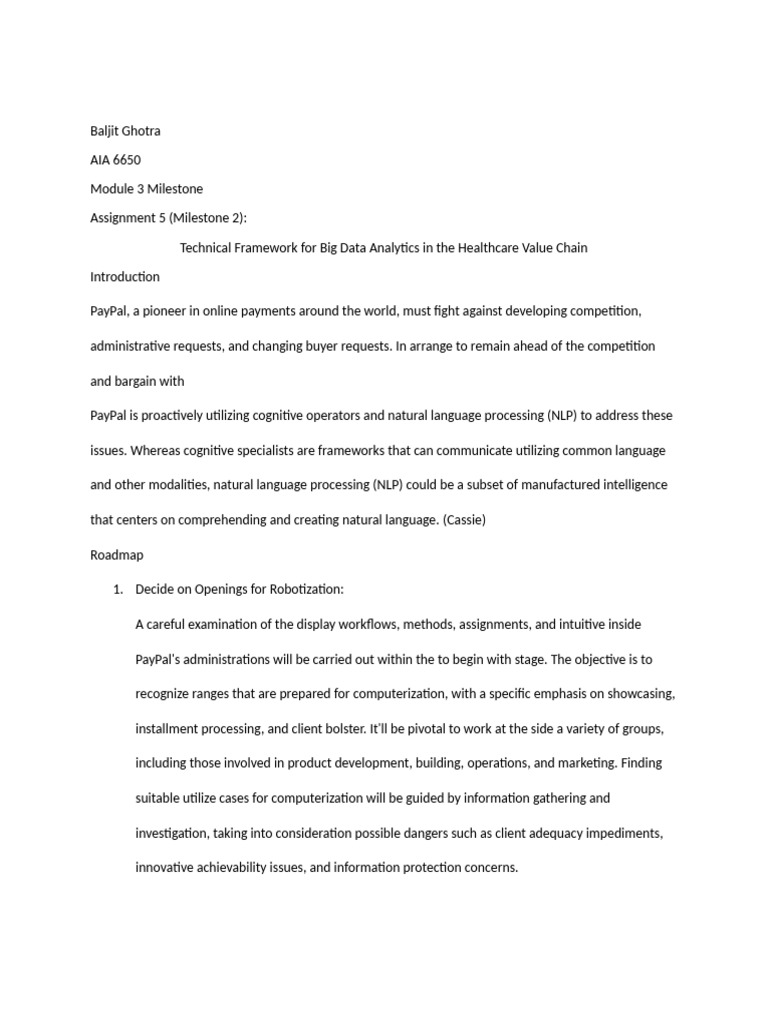 Assignment 5 (Milestone 2) Technical Framework For Big Data Analytics in The Healthcare Value Chain