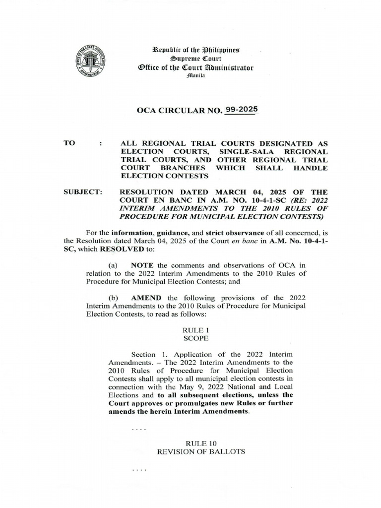 OCA CIRCULAR NO. 99-2025