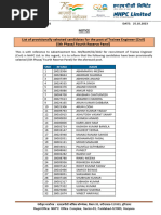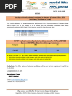 1.) The list of candidates listed below are provisionally shortlisted for further selection process of