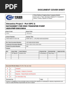 The document provides datasheets for the Jockey Firewater Pumps as part of the Front-End Engineering Design for the Egbaoma Gas Processing Plant Firewater System Upgrade Project. It includes revision history, change history, and detailed specifications for the pumps, including performance, construction materials, and operational conditions. The document outlines requirements for design, approval, and review processes, emphasizing compliance with relevant standards and specifications.