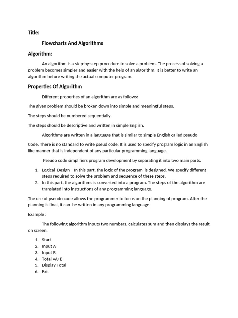 problem becomes simpler and easier with the help of an algorithm. It is better to write an