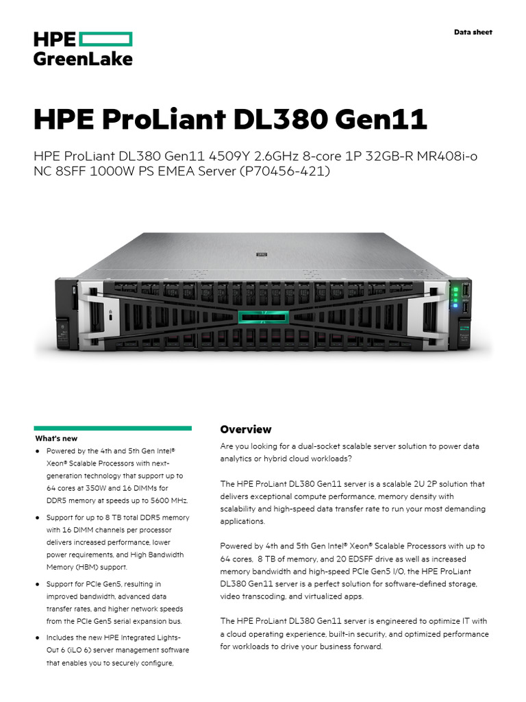 The HPE ProLiant DL380 Gen11 server is an excellent choice for compute and