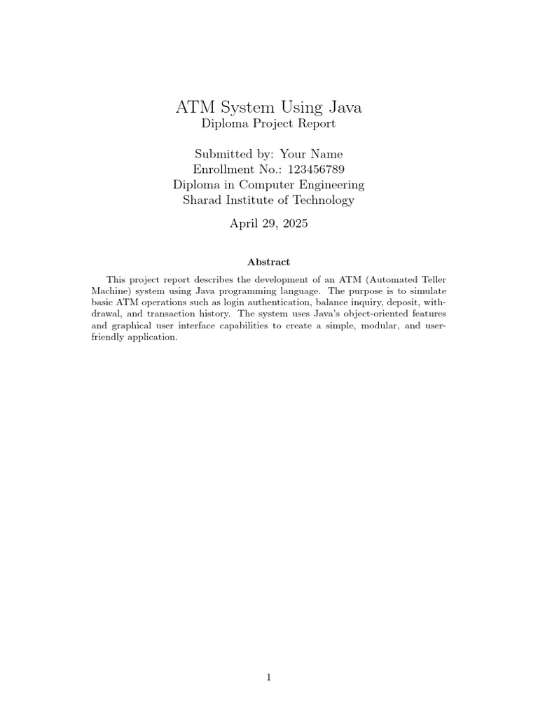 The Java-based ATM simulation successfully demonstrates basic banking operations us-