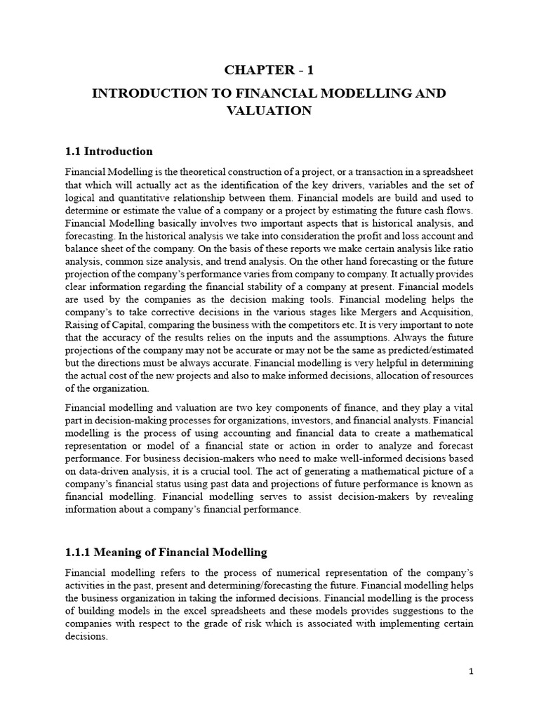 modelling is the crucial task. Using a reliable financial model, we can better comprehend the