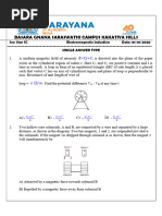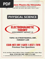 The document contains a collection of JEE Advanced Physics questions over a span of 10 years, focusing on topics such as electromagnetic induction and alternating current. Each question includes a scenario, relevant data, and multiple-choice answers for students to select from. The questions are designed to test students' understanding of complex physics concepts and problem-solving skills.
