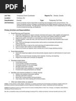 The Events Coordinator will be responsible for planning, executing, and overseeing a variety of events at the