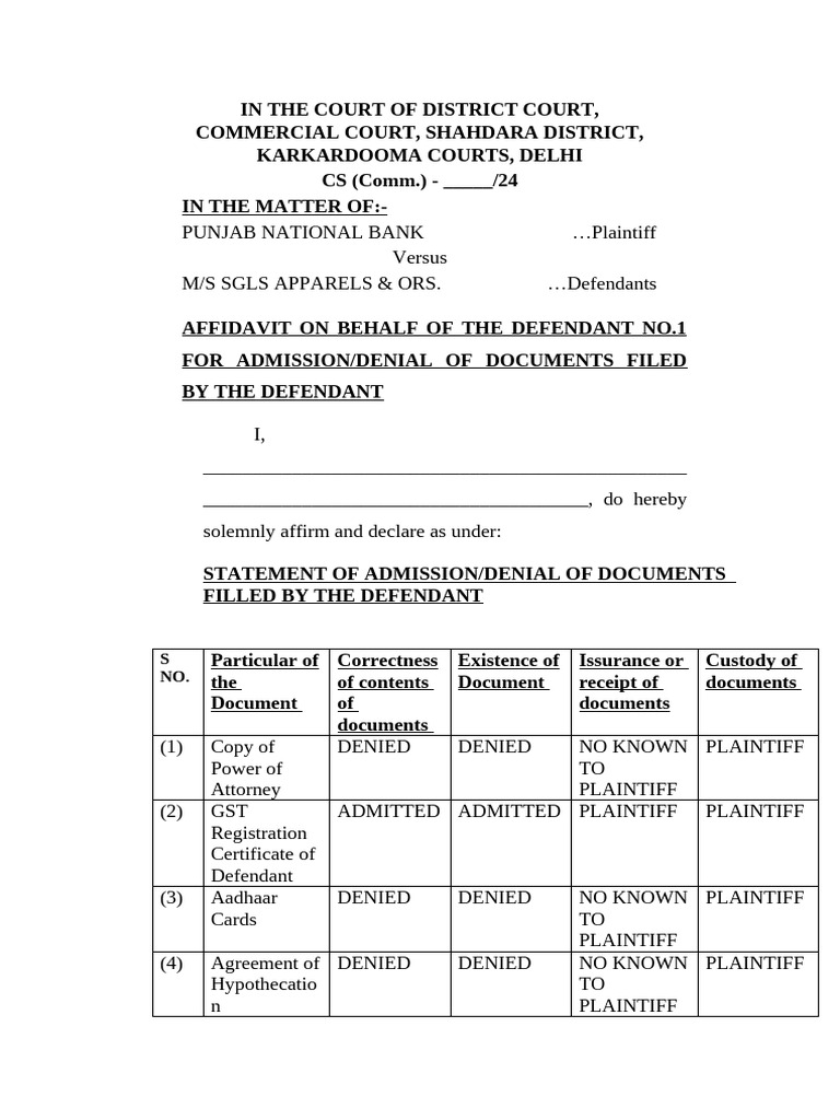 (2) GST ADMITTED ADMITTED PLAINTIFF PLAINTIFF