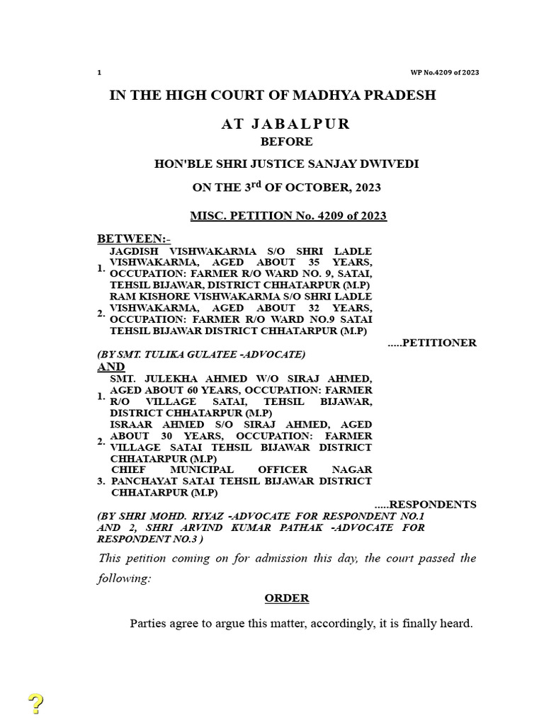R/O VILLAGE SATAI, TEHSIL BIJAWAR,