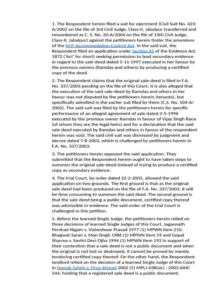 in Nawab Saheb v. Firoz Ahmad 2002 (5) MPLJ 438(sic) : 2003 AIHC