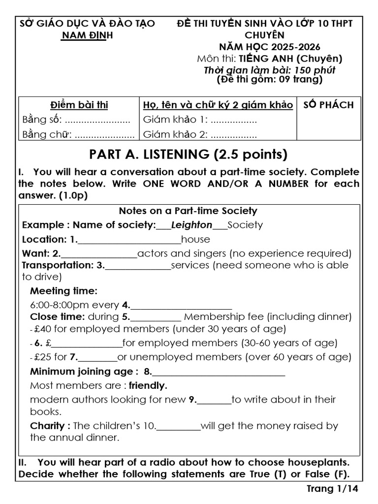 PART B. GRAMMAR AND VOCABULARY (2.5 points)