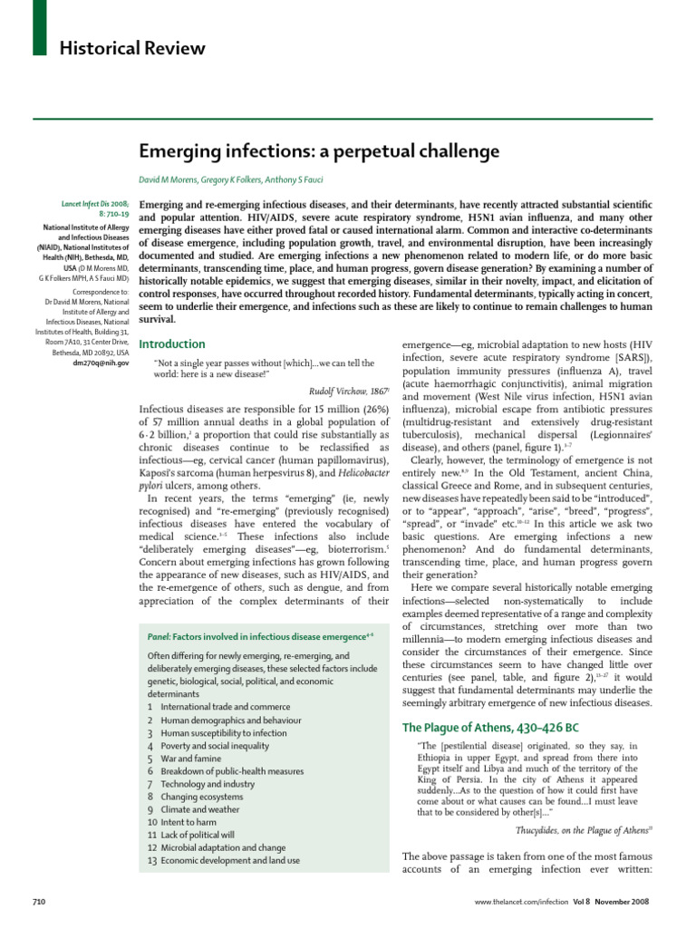 Lancet Infect Dis 2008; Emerging and re-emerging infectious diseases, and their determinants, have recently attracted substantial scientific