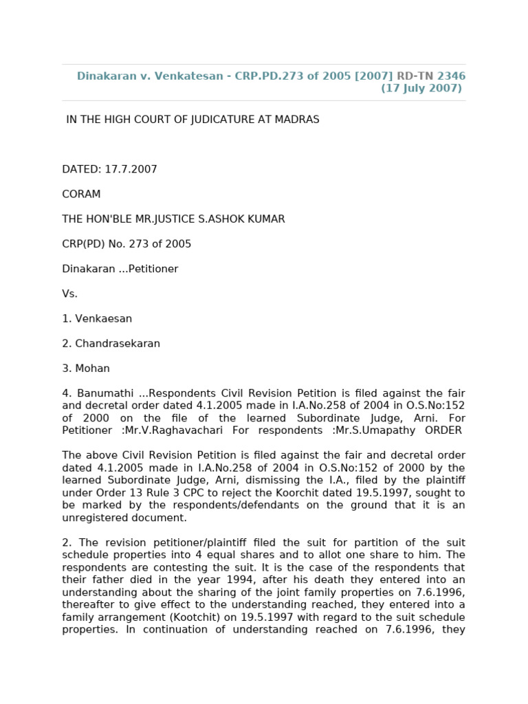 Dinakaran v. Venkatesan - CRP.PD.