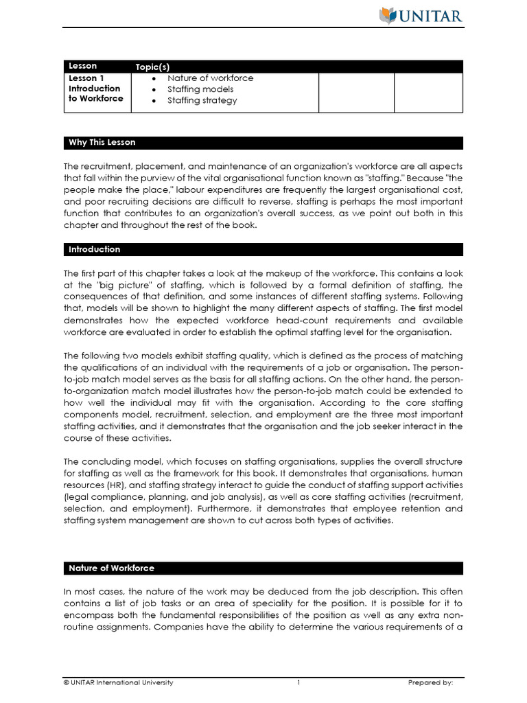 Lesson 1 Nature of workforce