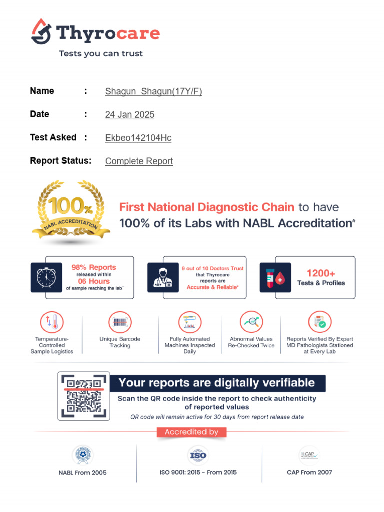 Scan QR code to verify authenticity of reported results; active for 30 days from release time.