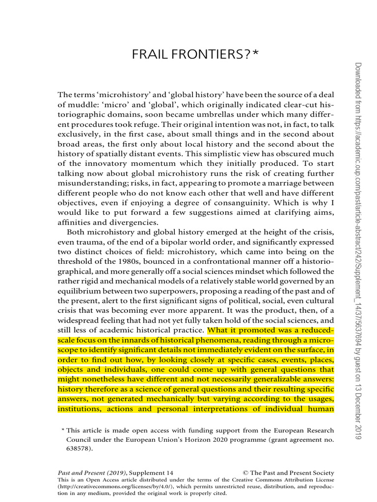 The terms ‘microhistory’ and ‘global history’ have been the source of a deal
