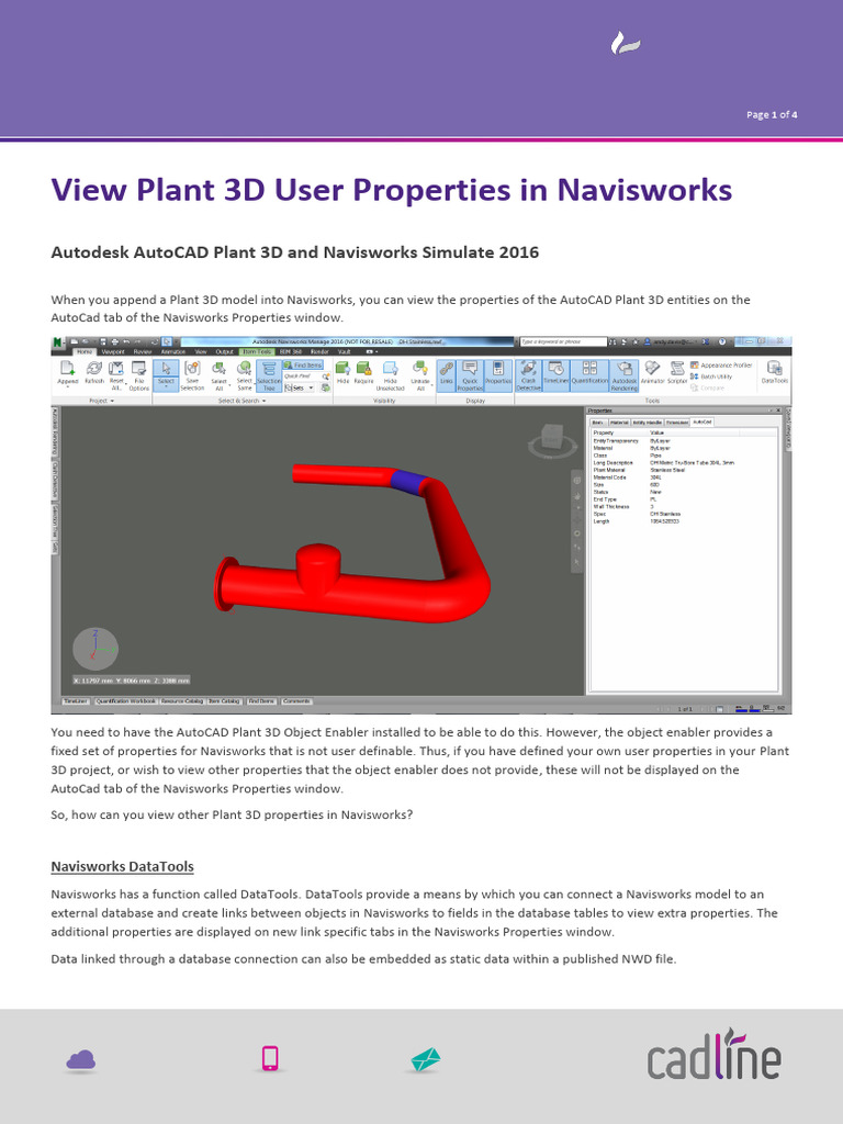 We can use the DataTools functionality to create a link between our Navisworks model and our Plant 3D project database.
