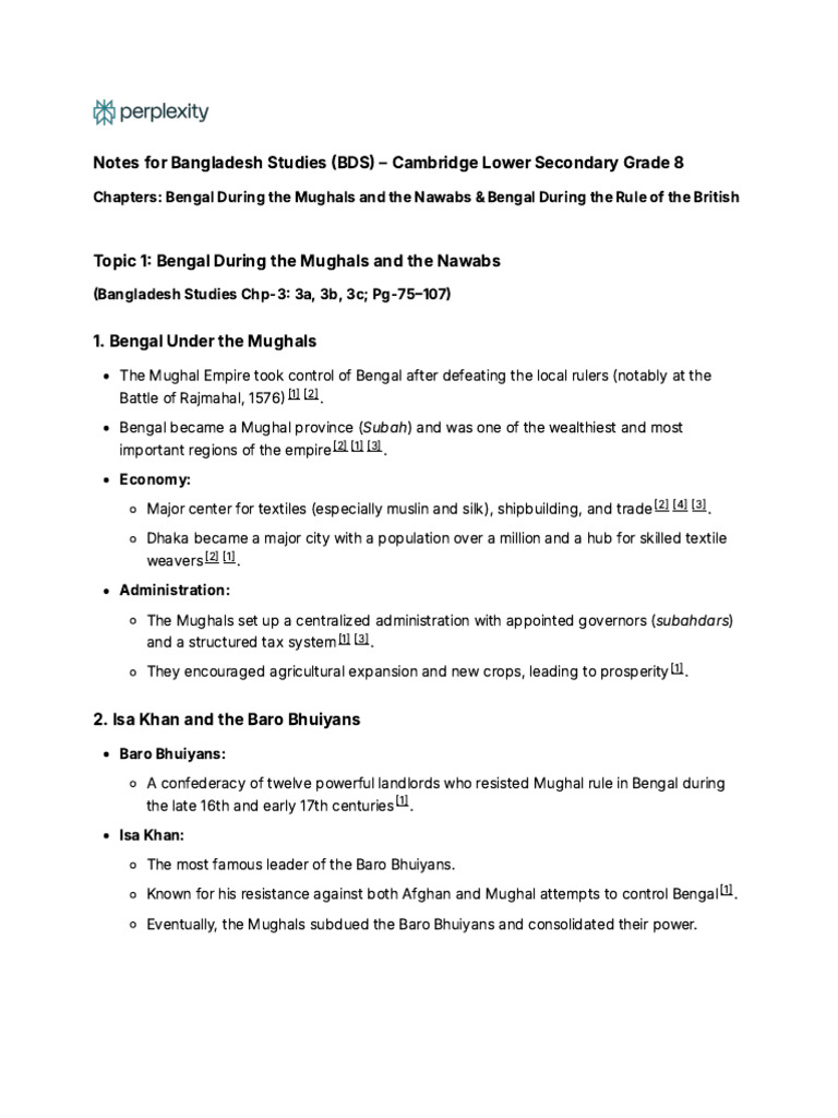 Notes for Bangladesh Studies (BDS) – Cambridge Lower Secondary Grade 8