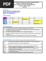 The Theory of Computation course (TE7299) focuses on automata theory, regular expressions, context-free grammars, pushdown automata, and Turing machines, aiming to equip students with the ability to analyze and relate these concepts. The course includes a comprehensive outline of topics, recommended textbooks, and evaluation methods, emphasizing both theoretical understanding and practical applications. Dr. Parag Kulkarni serves as the course expert, guiding students through various learning objectives and pedagogical approaches.