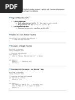 1. What is a function? Explain different types of functions used in C++ with examples.