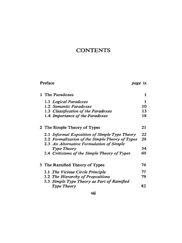 The Theory of Logical Types Monographs in Modern L... - (Table of Contents)