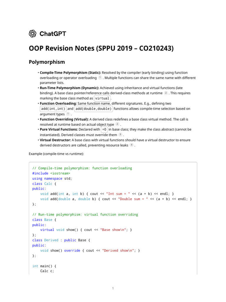 OOP Revision Notes (SPPU 2019 – CO210243)
