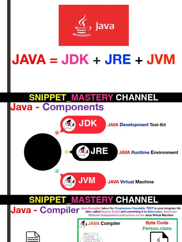 Java = JDK + JRE + JVM Makes Java Platform Independent