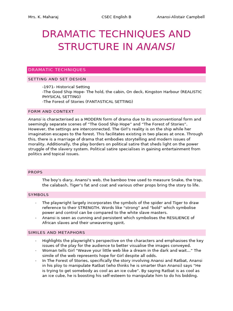 Mrs. K. Maharaj CSEC English B Anansi-Alistair Campbell