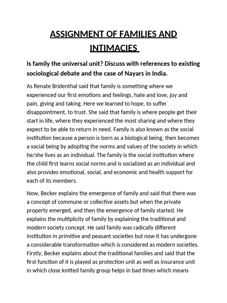 Is family the universal unit? Discuss with references to existing
