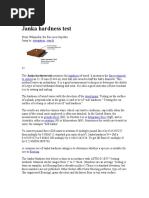 Janka Hardness Test: A measure of the hardness of wood, produced by a variation of the Brinell Hardness