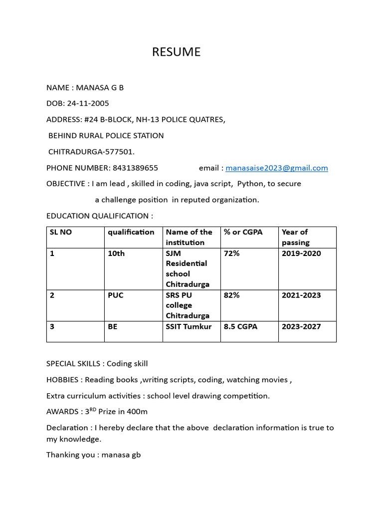 Thanking you : manasa gb