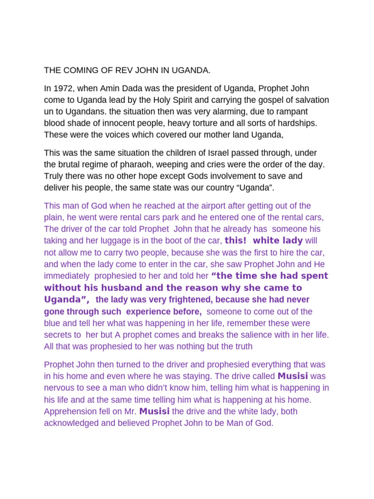 In 1972, when Amin Dada was the president of Uganda, Prophet John