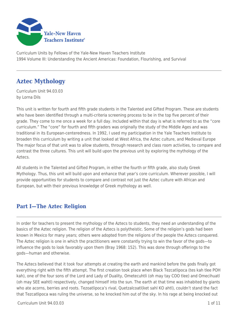 In order for teachers to present the mythology of the Aztecs to students, they need an understanding of the